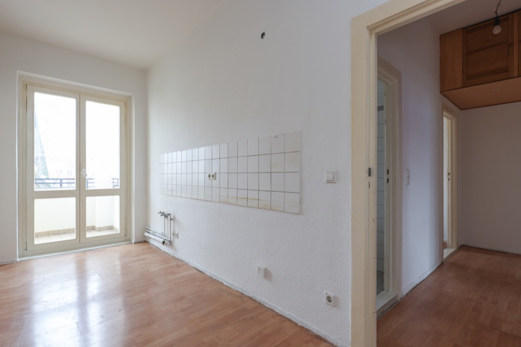 The apartment, consisting of two rooms, a kitchen, a nice bathroom with tub and a balcony has been completely repainted and the renovations are therefore limited to only changing the laminate floors.