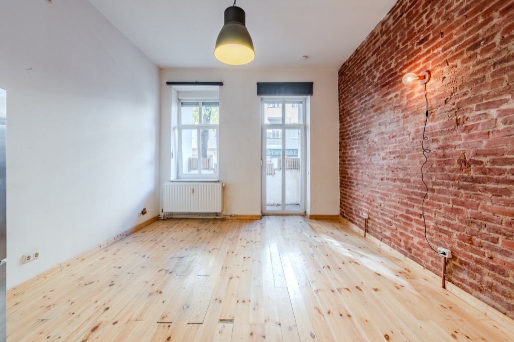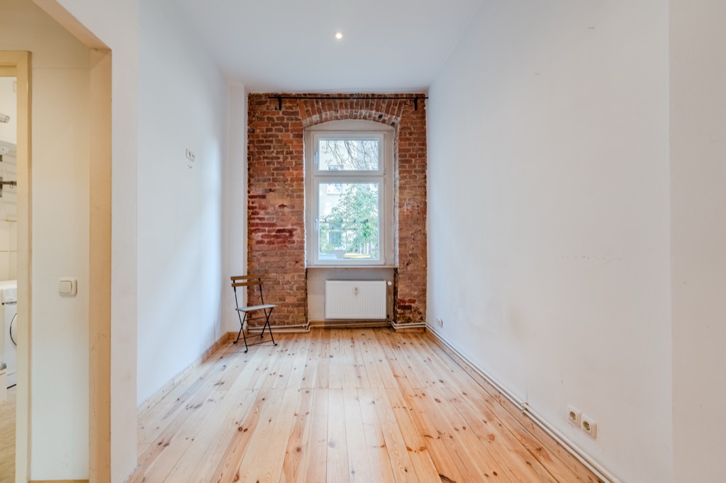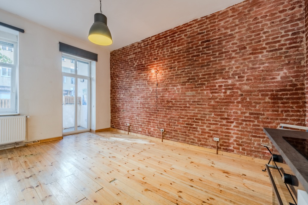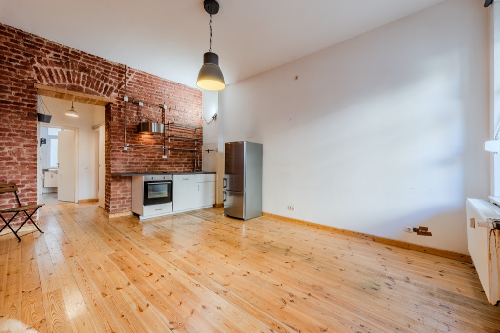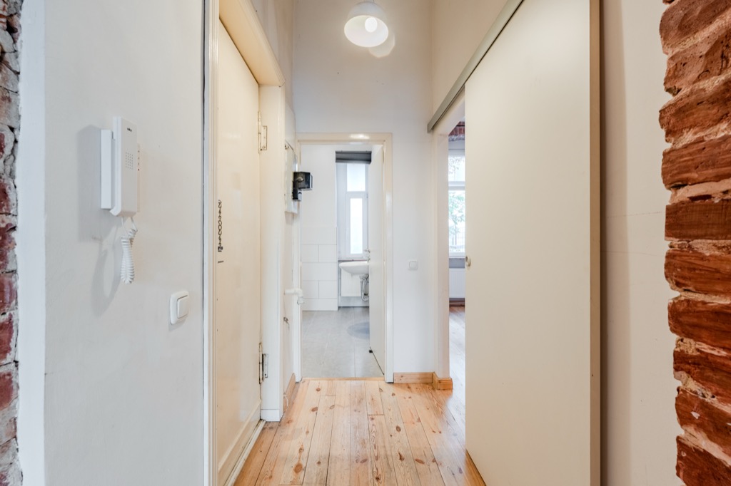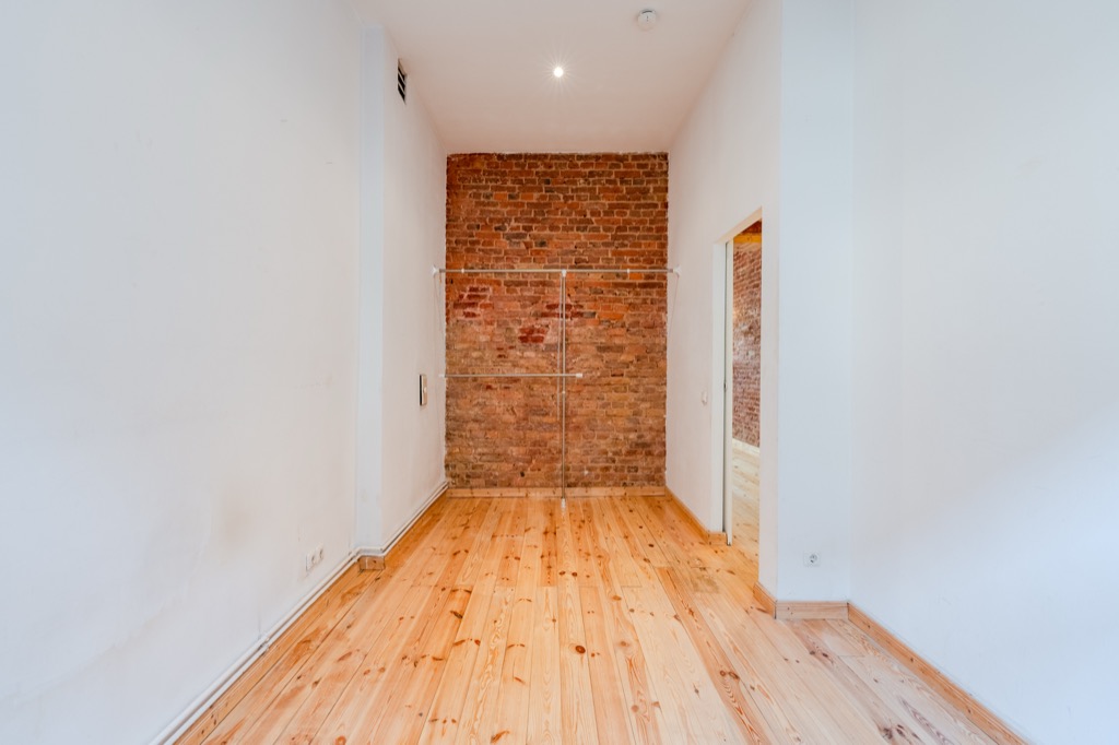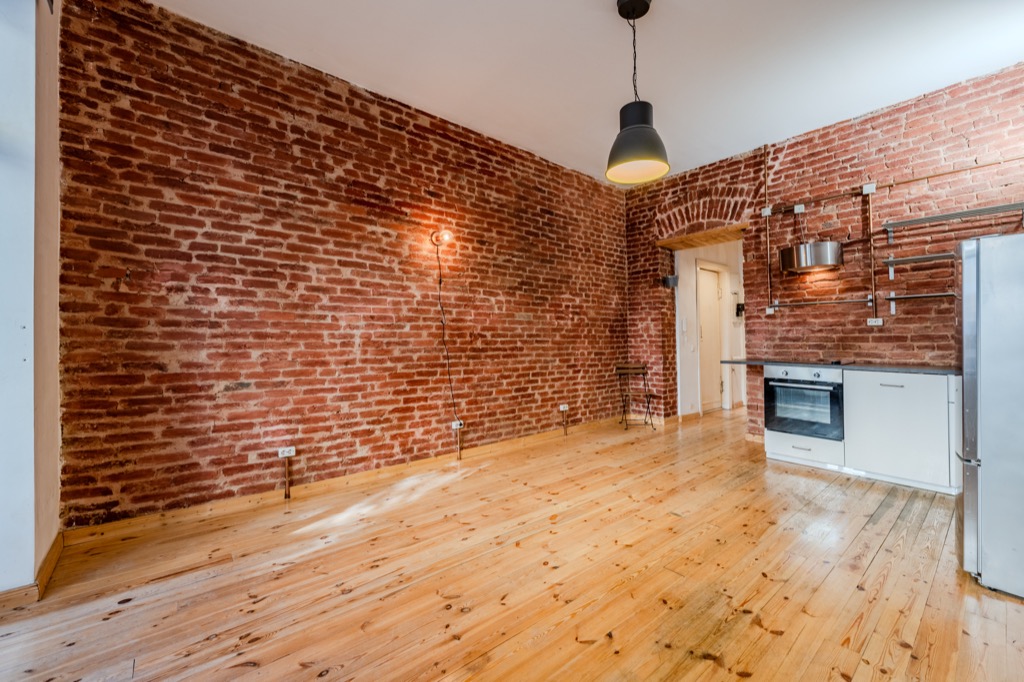 These brick walls, the wooden floors and the height of the ceilings give the apartment a special atmosphere.