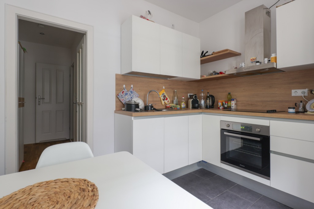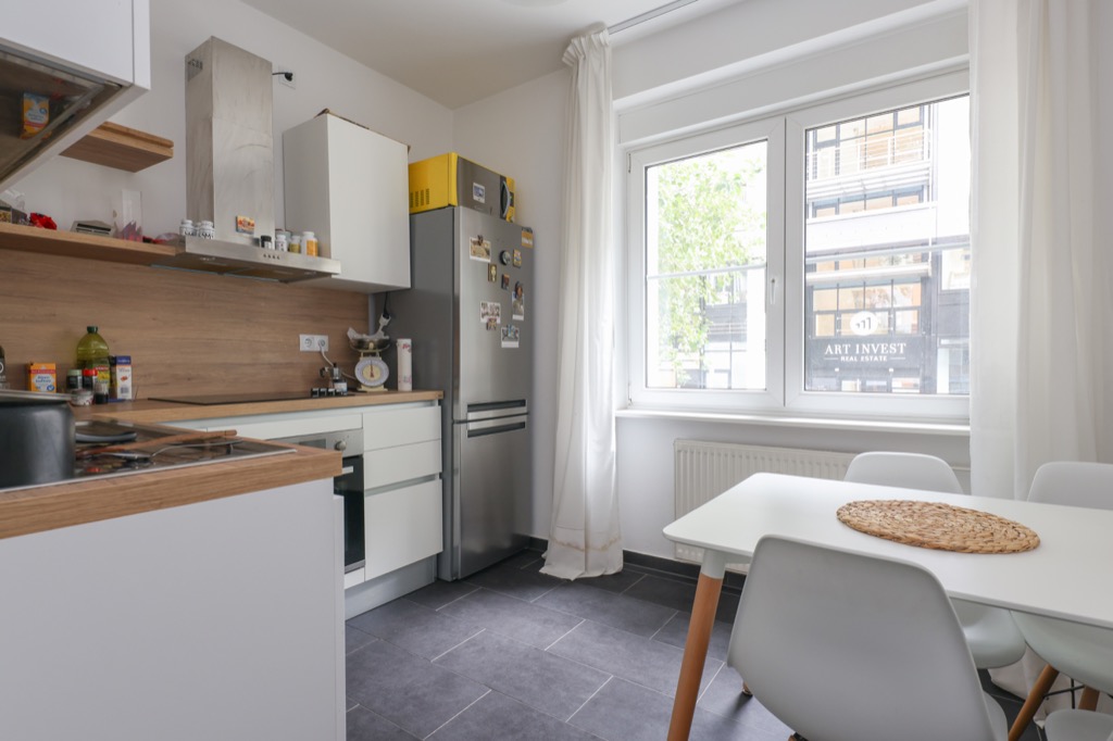 The apartment is located on the mezzanine floor in a recently completely renovated building. The apartment has all comforts and valuable building features.and has all comforts and valuable building features.