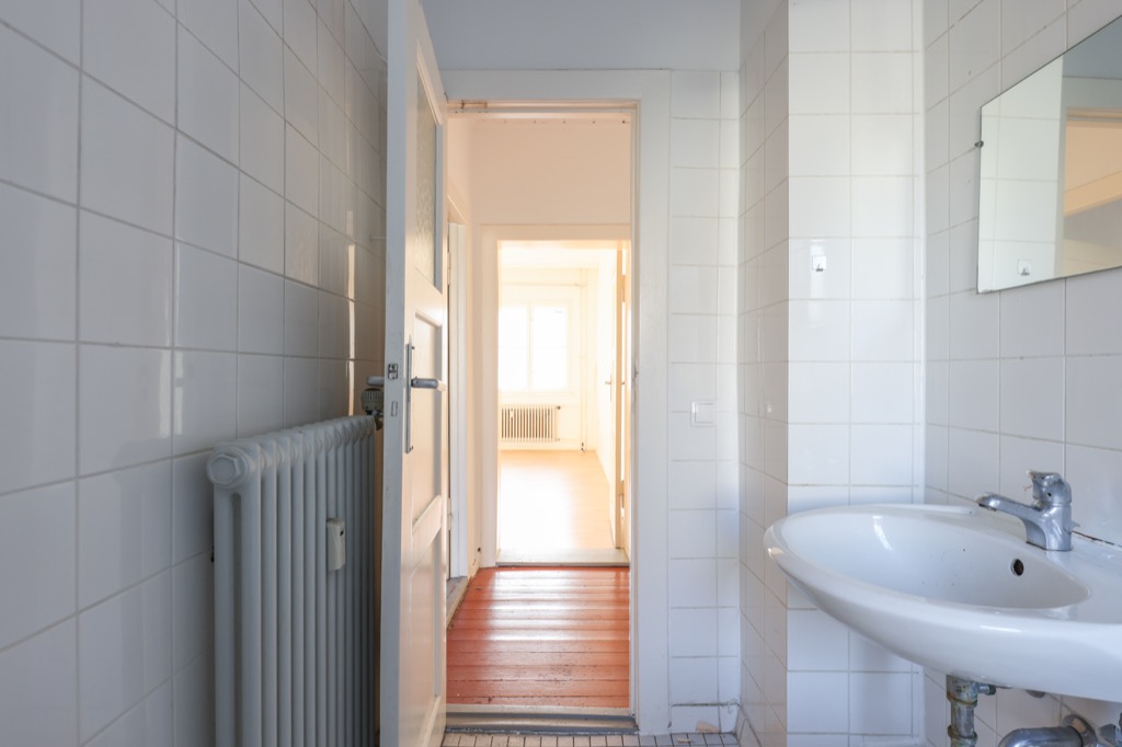 The bathroom, with a large window, needs to be modernized a bit but is spacious, very bright and airy. The doors, like the locks, are original from 1940.