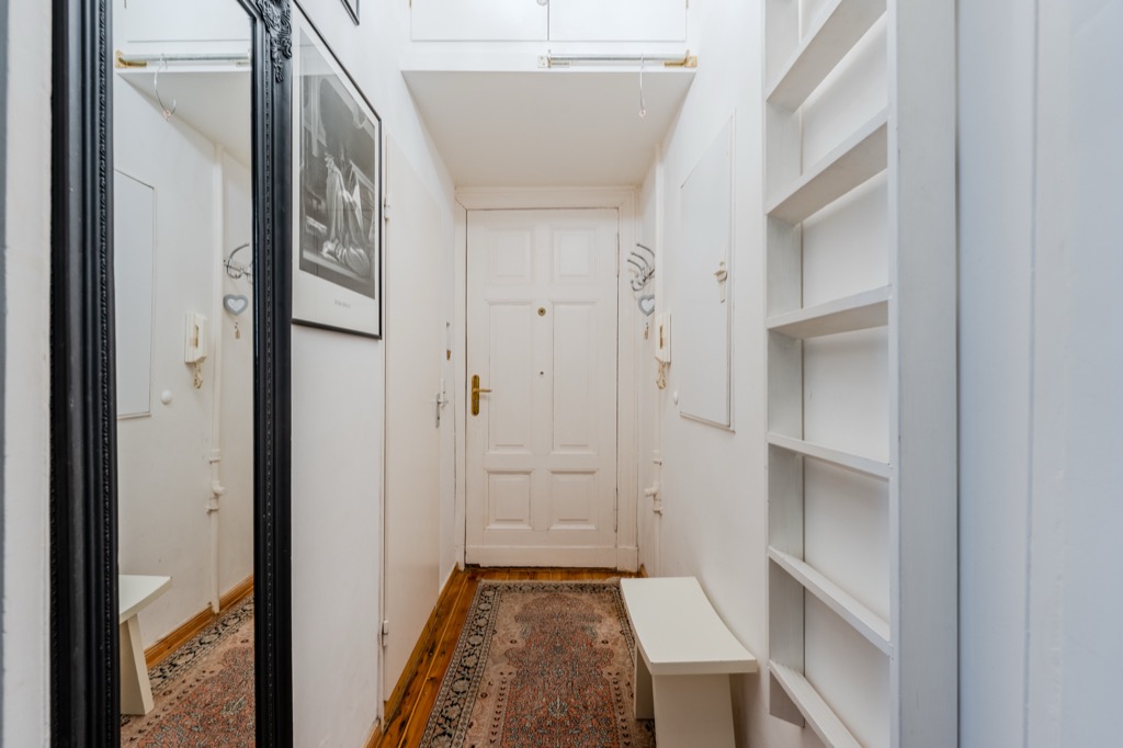 Being inside the large courtyard, the apartment enjoys total silence, a true oasis of tranquility even though it is just a stone’s throw from the surface metro station.