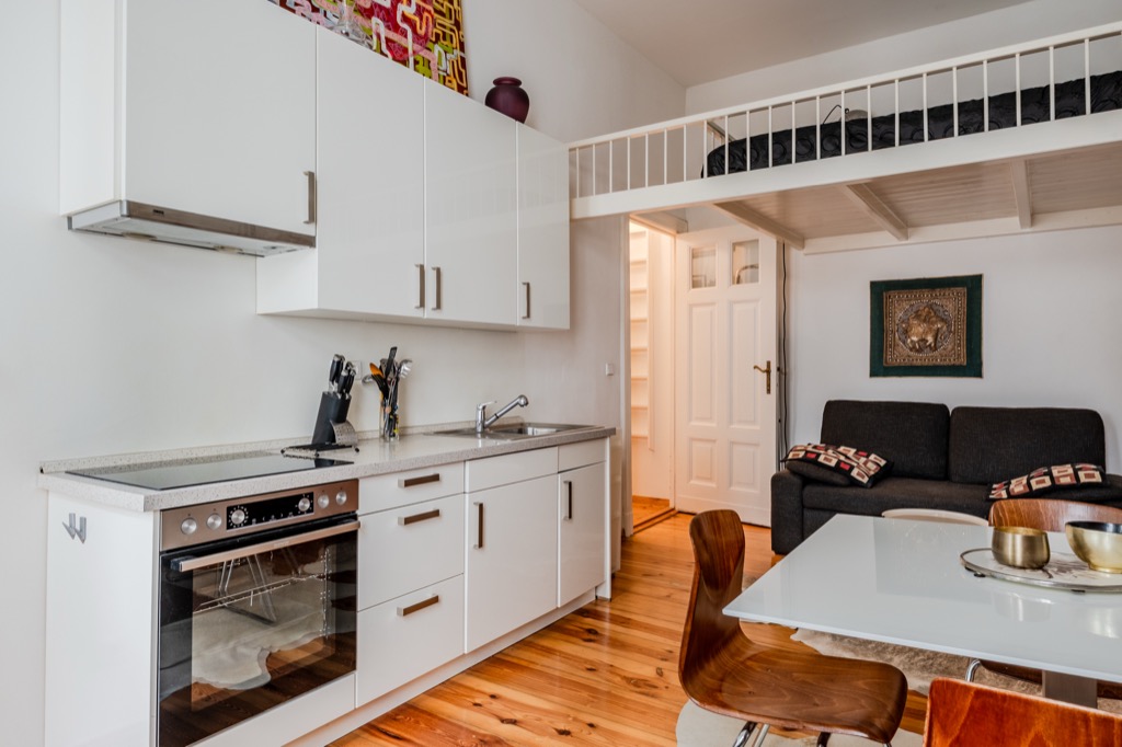 The open kitchen is perfectly equipped.