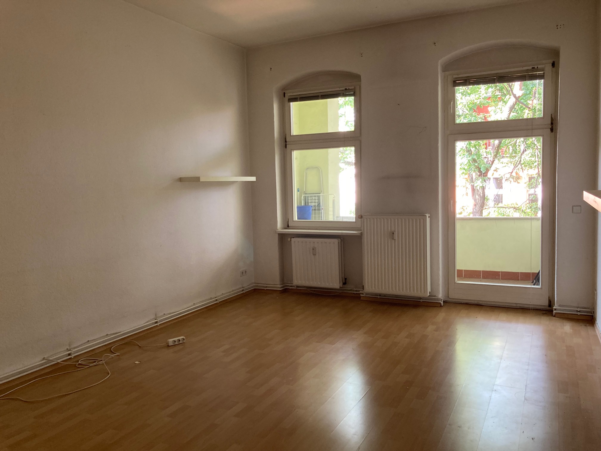 We offer you a large studio apartment of approx 47m2. with a large eat-in kitchen, bathroom with shower and a comfortable balcony overlooking the internal garden. The bright apartment is located on the 4th floor of a beautiful early 20th century building in the famous Grünbergerstraße a stone’s throw from Boxhagener Platz, famous among other things for its picturesque weekend markets.