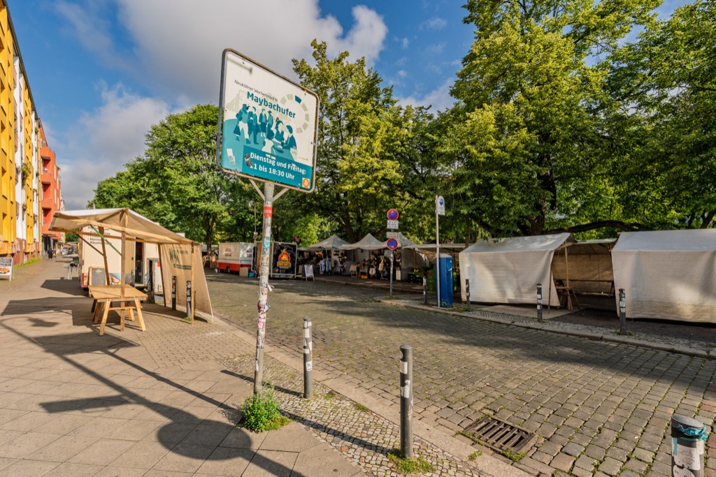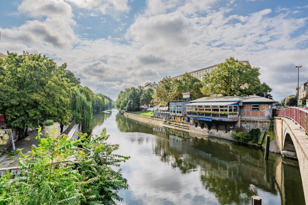 The Maybachufer area is located between the Neukölln and Kreuzberg neighborhoods, hence the name Kreuzkölln. Known for its splendid biweekly market, the area is dotted with delightful cafes, restaurants, bars, and small shops, making it one of the city’s liveliest and most international neighborhoods. Every language in the world is spoken and eaten here. Perfectly connected by public transport.