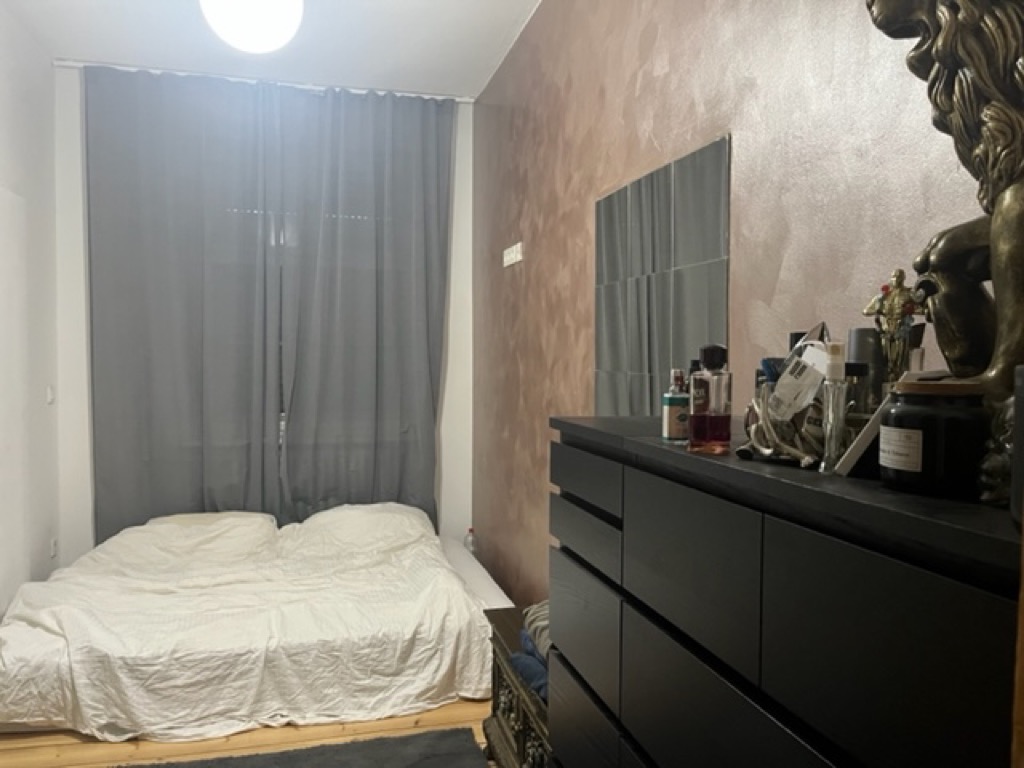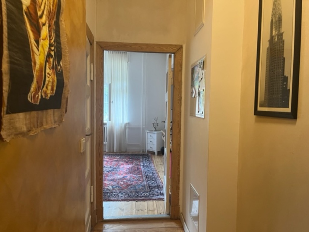 Die Wohnung besteht aus einem sehr geräumigen Eingang, einem großen Schlafzimmer, einem Wohnzimmer, einem kleineren Zimmer, einer schönen Küche und einem Badezimmer mit Dusche.