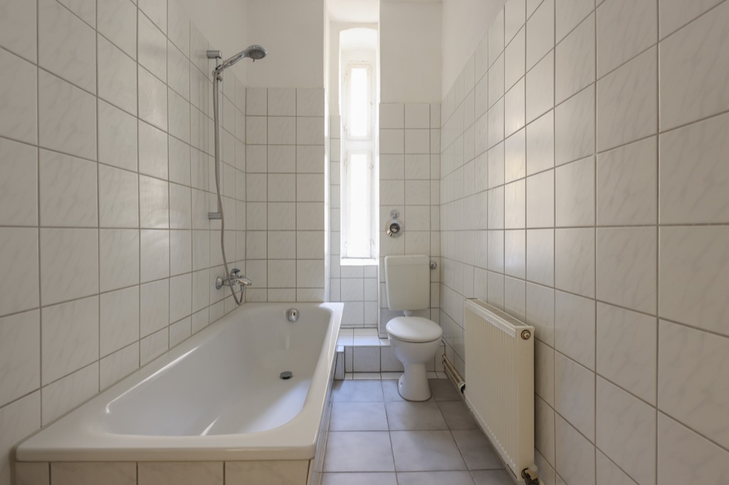 Es handelt sich um ein großzügiges Studio-Apartment im 1. Stock eines wunderschönen Gebäudes aus dem frühen 20. Jahrhundert mit einer kompletten und separaten Küche, in der Platz zum Essen geschaffen werden kann, einem schönen Badezimmer mit Fenster und Badewanne sowie einem beheizten Handtuchhalter.