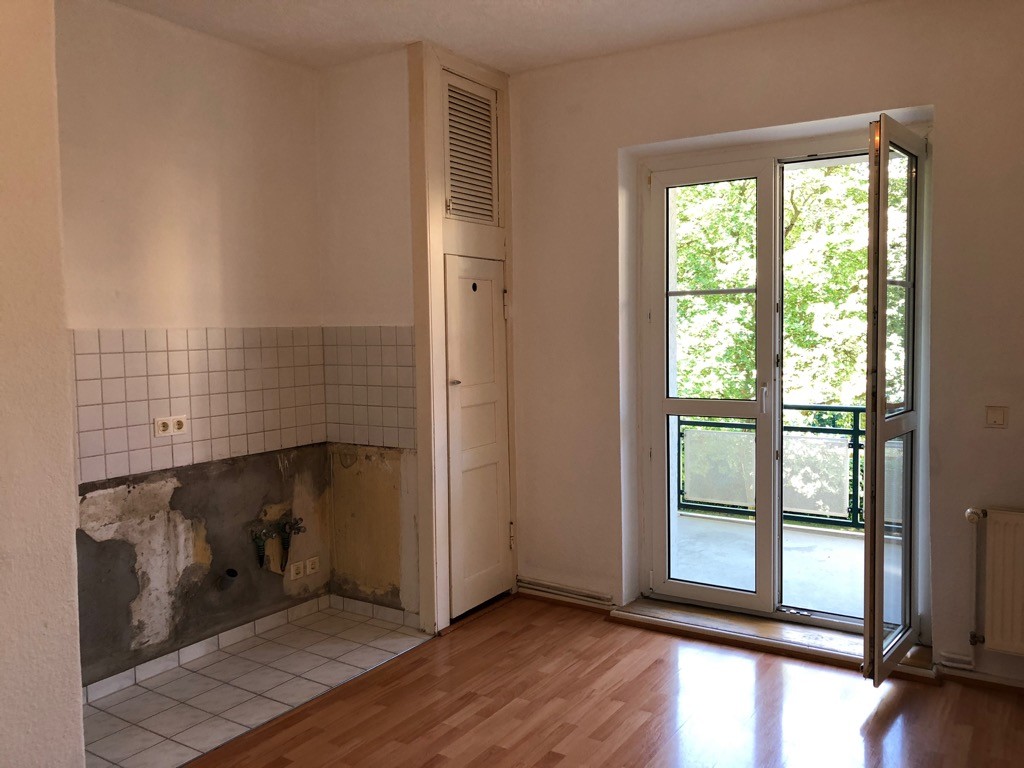 Wir bieten Ihnen eine leerstehende 1-Zimmer-Wohnung mit großer Wohnküche und Balkon in Berlin Spandau.