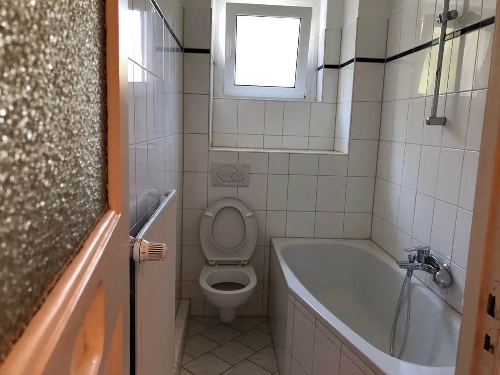 Die Wohnung befindet sich im 1.OG und verfügt über Schalfzimmer, Wohnküche über 12 qm. und Balkon, Tageslicht-Bad und Keller.