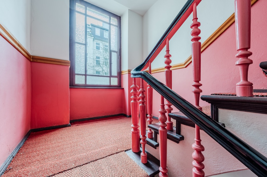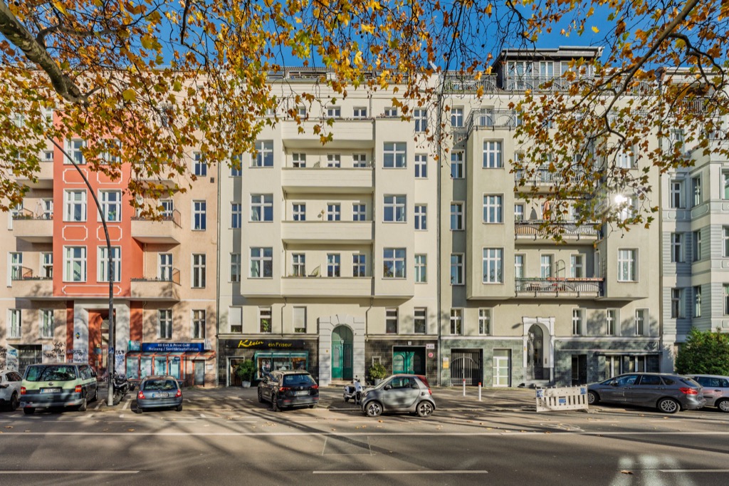 Das Gebäude ist gut renoviert und gepflegt und liegt direkt gegenüber dem bekannten Volkspark, der für seine Picknickplätze und als beliebter Ort für Outdoor-Sport und Spaziergänge bekannt ist. Das Apartment ist ab sofort verfügbar und befindet sich in strategisch günstiger Lage zwischen dem Stadtteil Prenzlauer Berg (zu dem es gehört) und Friedrichshain. Die Lage ist ideal: Die Straßenbahnlinie M10 hält direkt vor dem Gebäude, und die S-Bahn ist nur 4 Gehminuten entfernt. Damit ist die Wohnung perfekt für Singles, Studenten oder junge Paare.