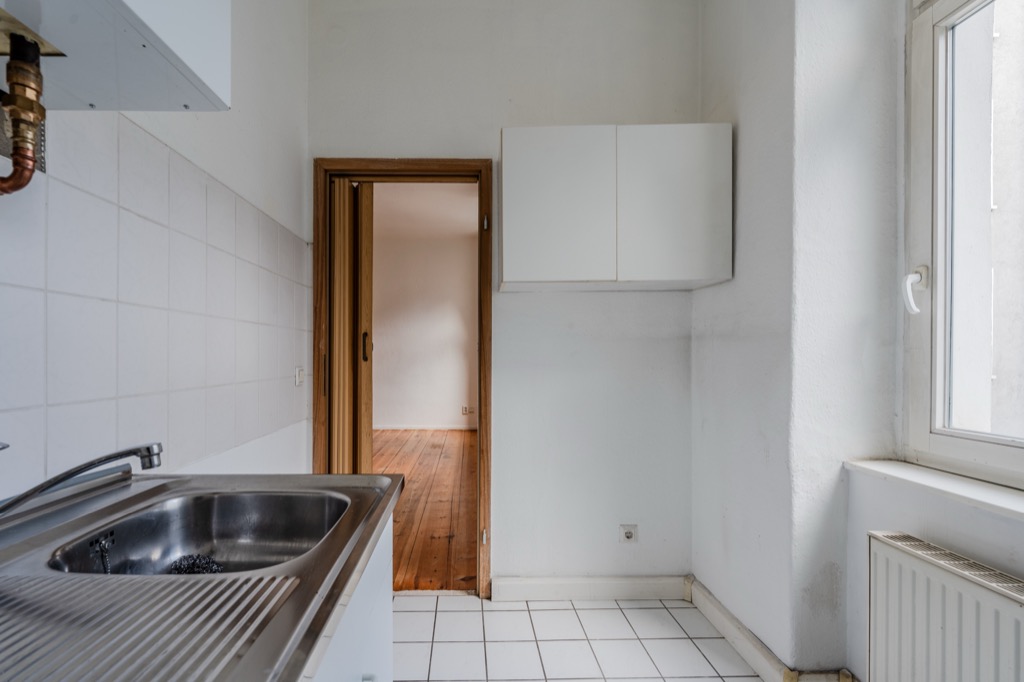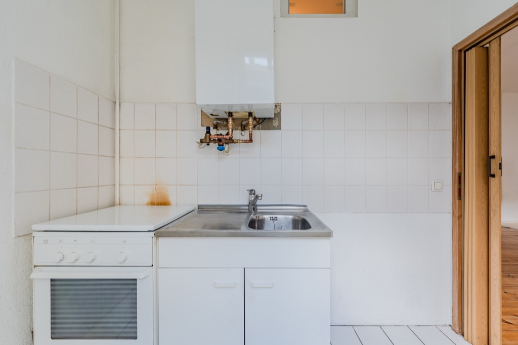 Es besteht aus einem Eingangsbereich, einem komfortablen Badezimmer mit Dusche, Warmwassertherme und einer neuen Heizungsanlage, einem Zimmer mit zwei großen Fenstern und einer Küche mit einem Fenster, in dem sich problemlos eine kleine Frühstücksecke einrichten lässt.