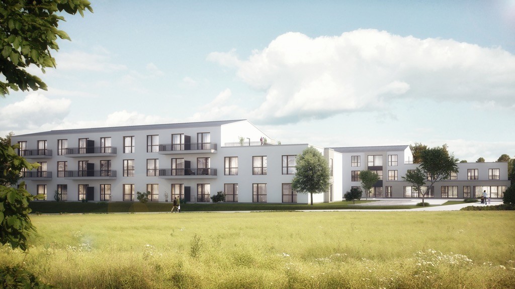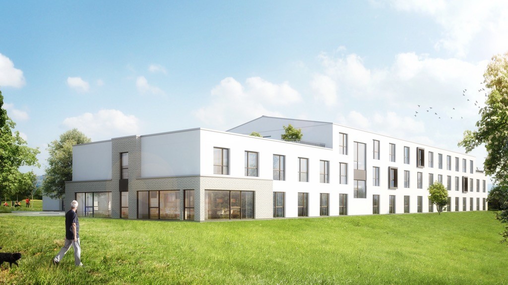 Mit seiner dreigeschossigen Ausführung und der stilvoll gestalteten Außenfassade fügt sich das Gebäude wunderbar organisch in die bestehende Bebauung der Umgebung ein. Gleichermaßen großzügig wie behaglich gestaltete Gemeinschafts- und Aufenthaltsräume bieten Platz für das gesellige Beisammensein. Weitläufige Dachterrassen und ein liebevoll gestalteter Außenbereich stehen für den allseits möglichen Aufenthalt an der frischen Luft. Eine hauseigene Cafeteria sogt zudem für das leibliche Wohl der Bewohner.
