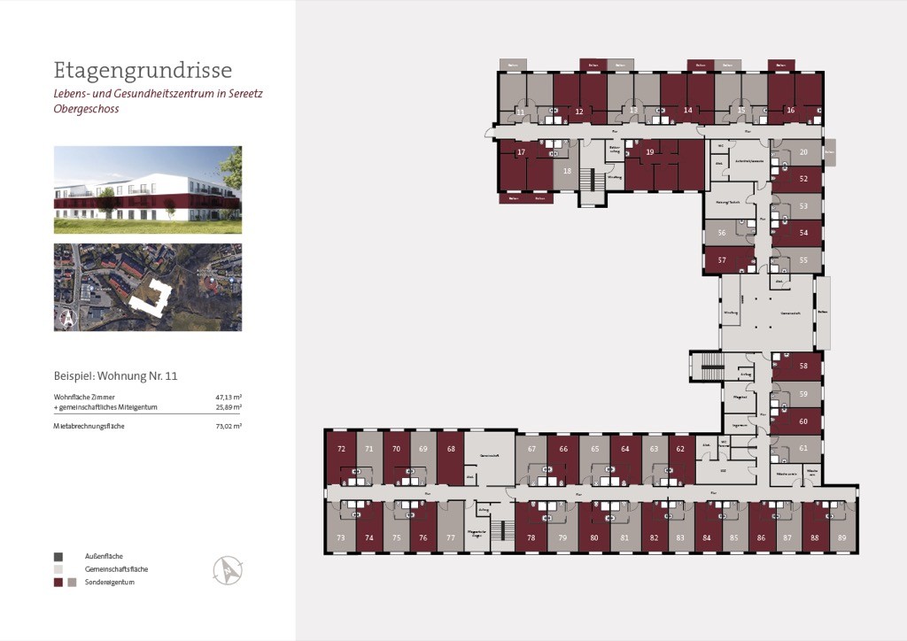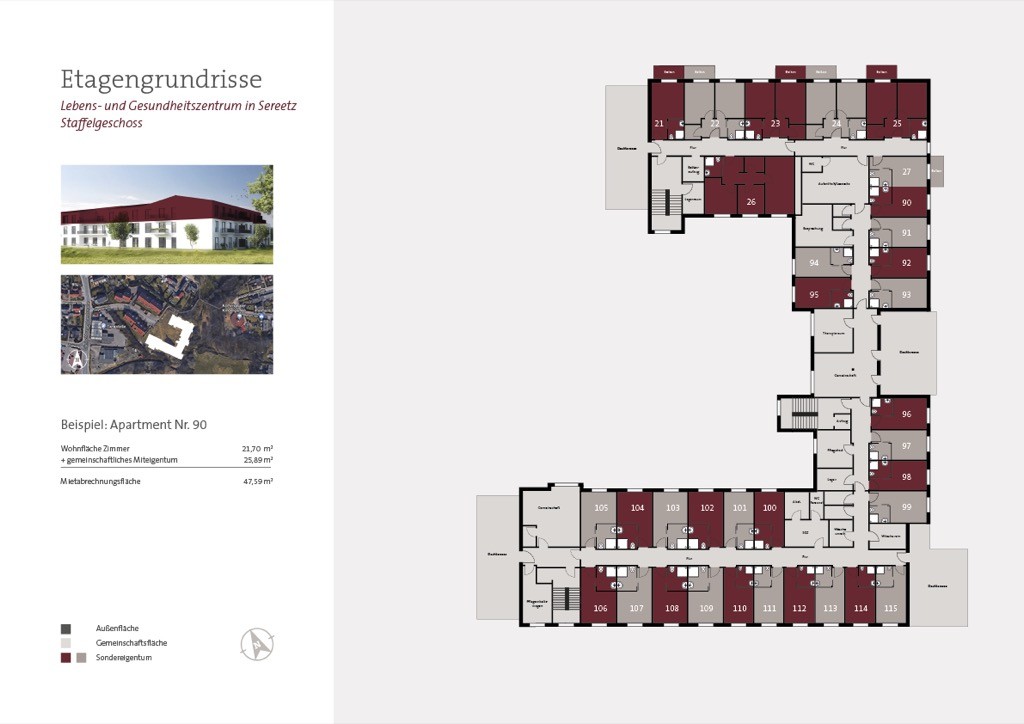 Das Lebens- und Gesundheitszentrum verbindet das weitgehend ländlich geprägte Umfeld der Dorfschaft Sereetz in der Gemeinde Ratekau mit der Nähe zur Ostsee und zur Großstadt Lübeck. Bewohner finden hier also ein Zuhause, das ein gleichermaßen geruhsames wie aktives Leben im Alter ermöglicht. Der inmitten eines familiär geprägten Wohnquartiers gelegene Neubau bedient dabei die Erfordernisse einer modernsten Pflegeeinrichtung, setzt darüber hinaus aber auch bewusst Akzente in puncto Wohnlichkeit und Komfort. Insgesamt bietet das dreigeschossige Gebäude Platz für 115 Wohneinheiten, von denen jede selbstverständlich über ein eigenes Badezimmer verfügt.