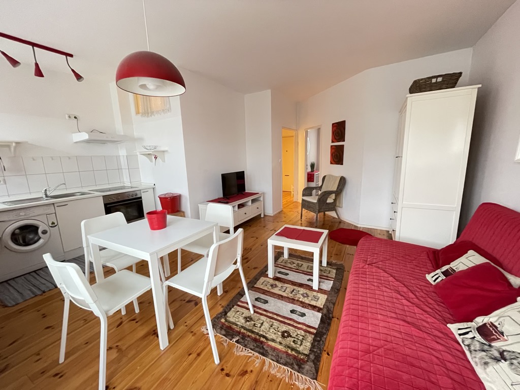 Siamo lieti di offrirvi un delizioso bilocale libero con balcone a Berlino Charlottenburg. L’appartamento si compone di un ingresso, un ripostiglio, una stanza da letto con balcone, un soggiorno con cucina a vista e balconcino alla francese e un bagno. All’appartamento è inoltre associata una spazio cantina.