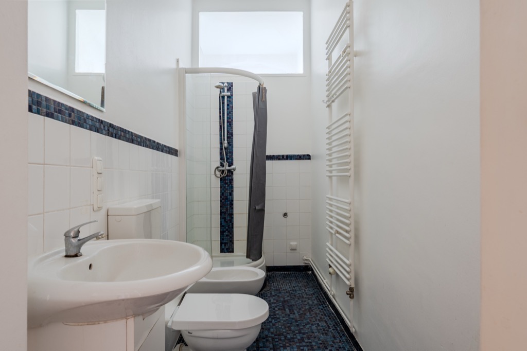 Davanti alla porta d’ingresso troviamo l’ampia cucina con un bell’angolo colazione a seguire un bagno con doccia, scalda asciugamani piastrellato con gusto ed infine la spaziosa camera da letto. I pavimenti sono in parquet a listoni originali, che insieme agli stucchi sui soffitti,sempre regalano fascino a questi palazzi di inizio ‘900.