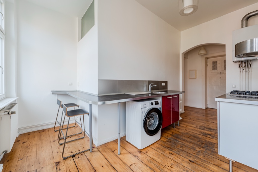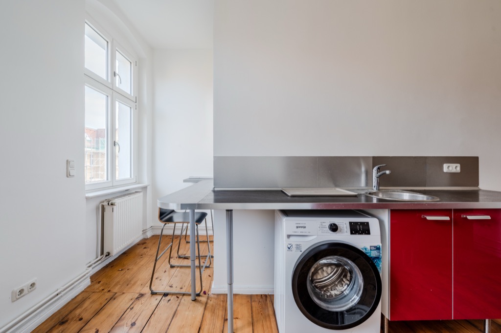 A due passi dalla ambitissima Boxhagener Platz, a due passi a piedi da Ostkreuz, snodo ferroviario di U-Bahn, S,Bahn con collegamenti diretti alla stazione Centrale e all’aeroporto, si trova questo spazioso bilocale posto al 4° piano di uno dei quartieri piú amati. Friedrichshain.